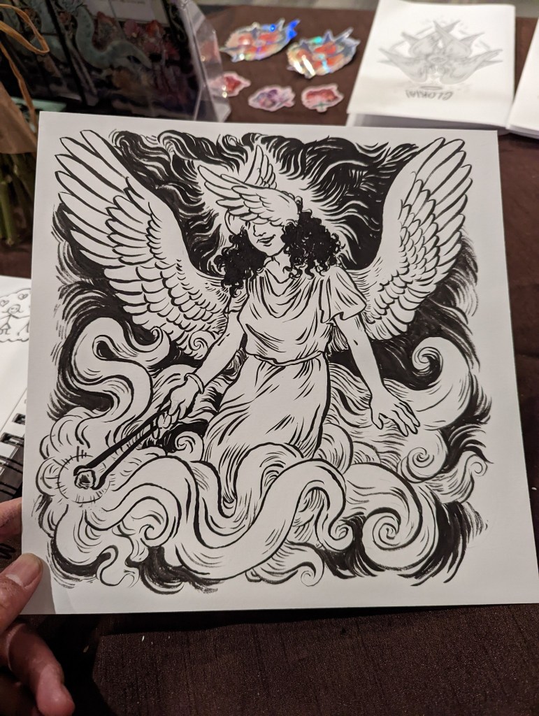 I made this angel print for the fair, since I thought I should have at least one more original art piece. I’m very happy with how it turned out! I’ve also listed the leftover prints for sale here on Storenvy.