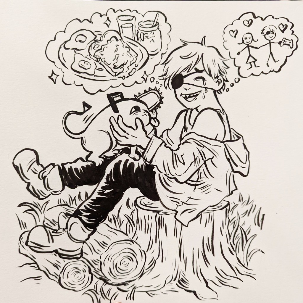 As well as something a bit more cartoony. It wasn’t exactly a weeby gathering, but I wanted to draw something Chainsaw Man related anyway