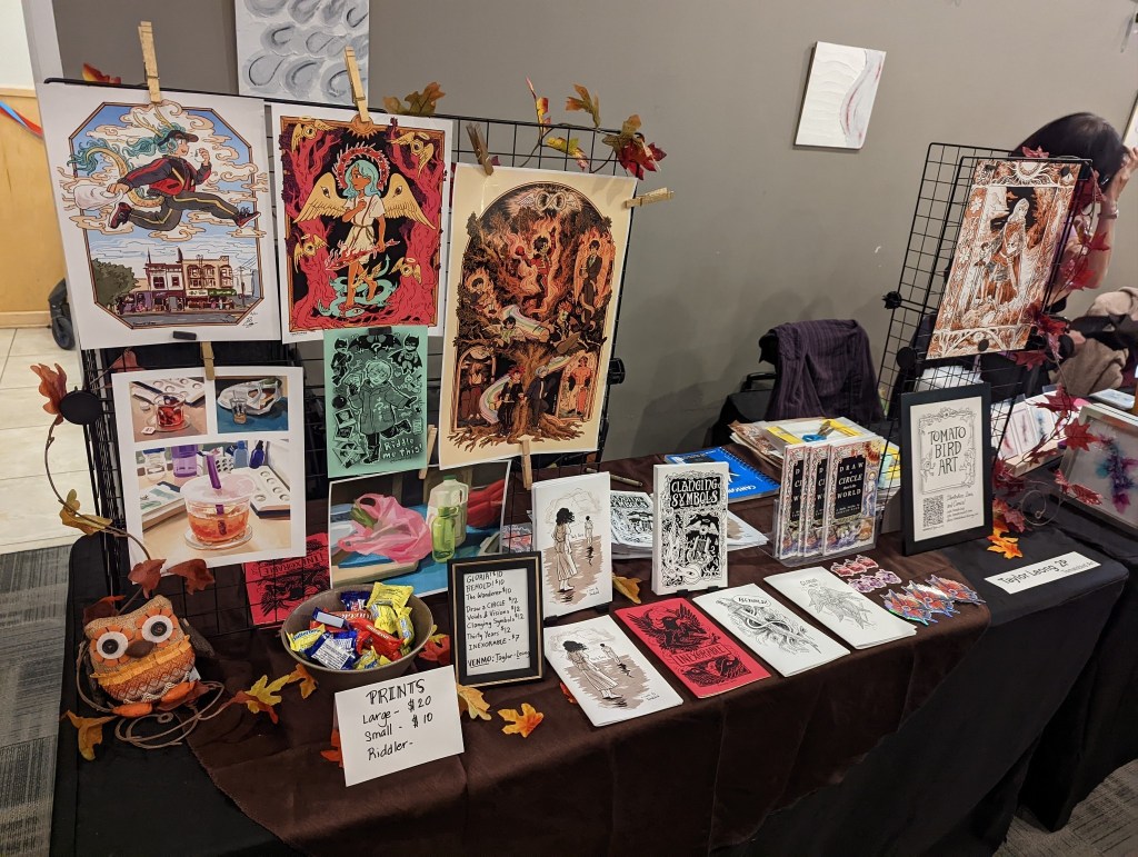 Overall, it was a fun time! I’ll probably be working on putting up the excess material, like stickers, excess prints, and zine printings, back up on my store and with some more promotion in the next few days. I’m also doing a workshop tomorrow about art selling and marketing, which I’m pretty excited about. I’ll try and write about what I learn afterwards….