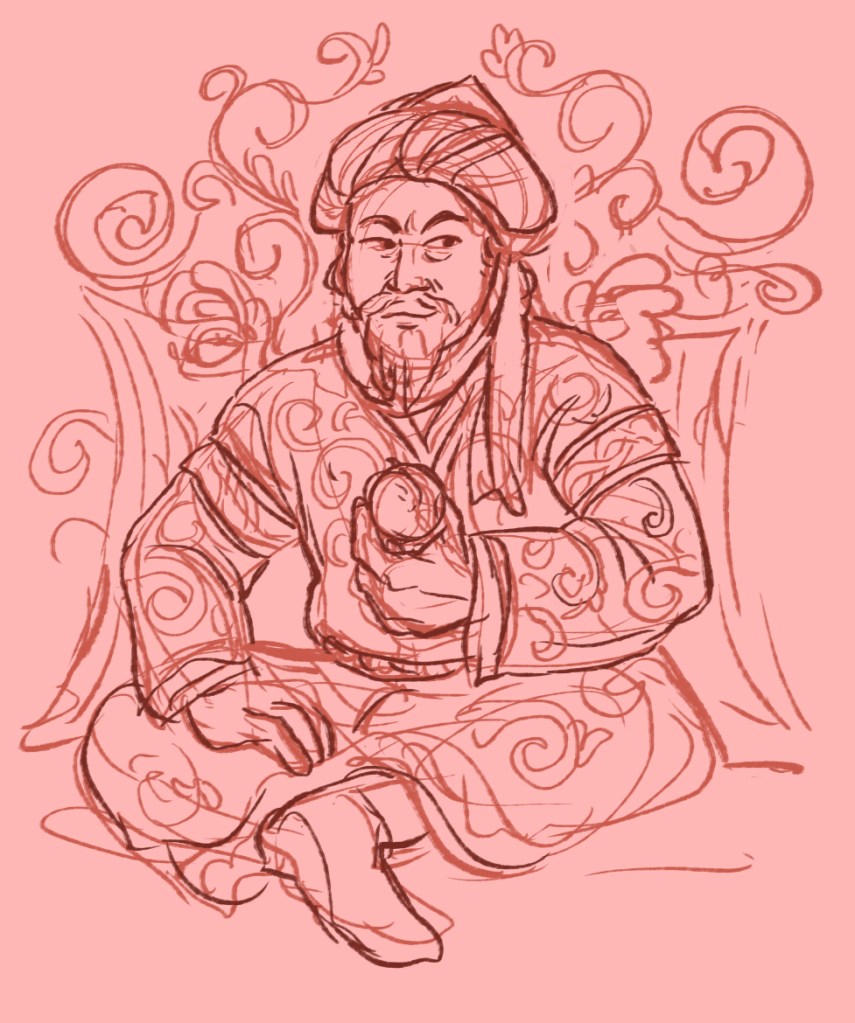 Depending on which historian you read, one can have many takeaways from any particular figure. Saladin is a figure who is very “larger than life” in his legacy and culture, and this is reflected in his portrayals. However I wanted to do something that felt authoritative, but also a little more quieter and down to earth. After all, he is revered in legends and accounts not only as a warrior and leader, but for being generous, cultured, and chivalric. Historian John Gillingham, writing about some of the casual and political dealings between Saladin and Richard the Lionheart during the Third, attributes a sense of humor and slyness to his political dealings as well. So I thought it would be a fun aspect to include.