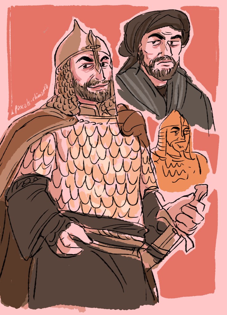 My own sketches and studies of Massoud’s Saladin. Kingdom of Heaven may be very historically inaccurate, but he was incredibly Daddy vibes in it so who’s complaining.