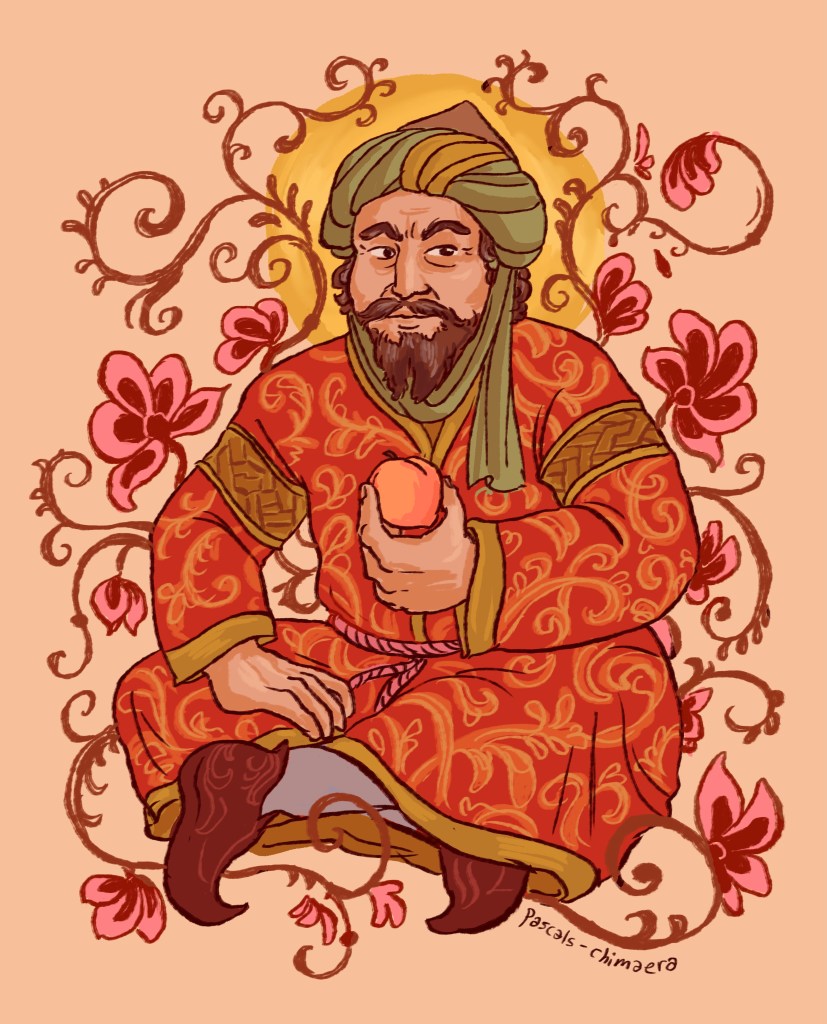 Salah al-Din Yusuf ibn Ayyub, better known to the Western World as Saladin. I wanted to do an illustration of him because I’ve found him to be a very interesting historical figure. Coming from a Kurdish background, he became the first Sultan of Egypt and Syria in the 12th century, and is known best for his military campaigns against King Richard the Lionheart and the occupying Frankish crusader states. Over the centuries he became figure of admiration both to Muslims and Christians, with many stories, poems, and legends depicting him as a great leader and chivalric role model.