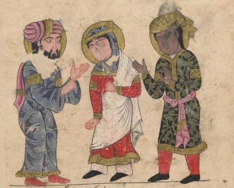 There aren’t very many portraits specifically of Saladin available of this time period, I remember in Middle School, my first exposure to learning a bit about art and history of the Islamic world, we were taught that most Islamic art was non-figurative—a vast oversimplication, not one I’m super qualified to analyze, but I do know there was quite a diversity of artistic tradition! There was definitively lots of thriving art during the 12th century, but when I first researched most of the writings I found were mostly to do with architecture rather than say, clothing. However I did find some works that were my direct inspirations.
