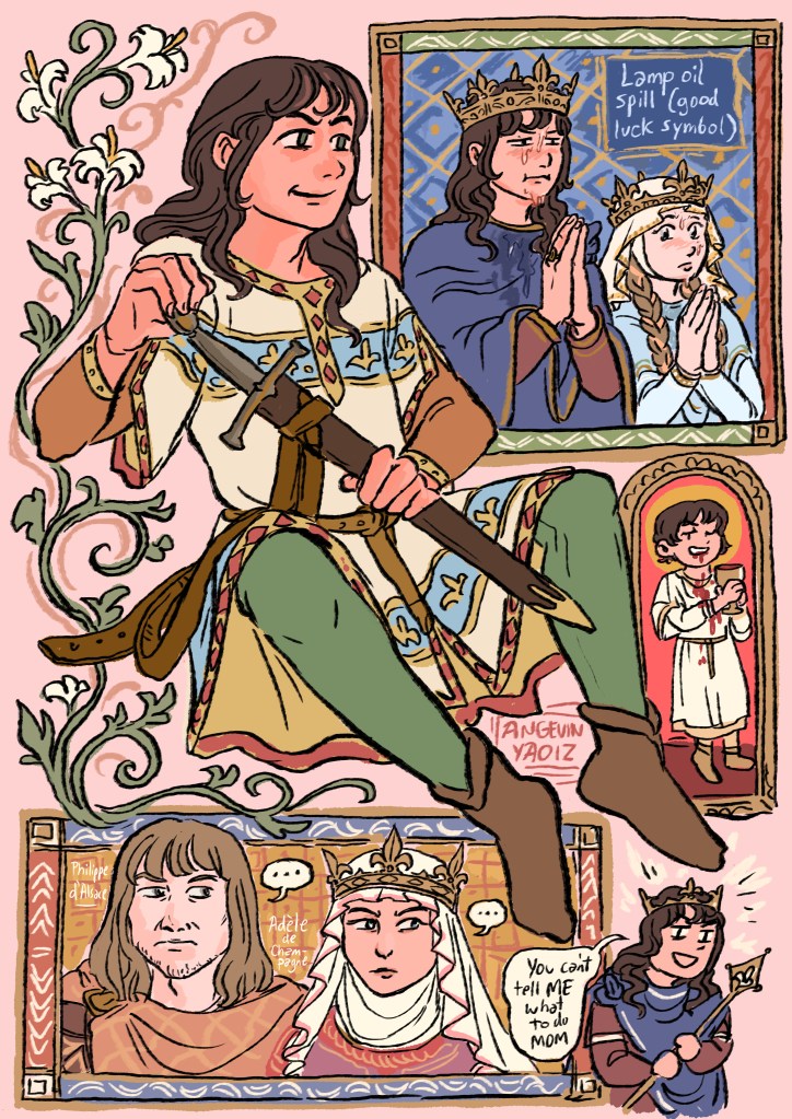 Some more King Philip II Augustus (Philippe Auguste) doodles, some of my favorites I’ve made over the past year. I wanted to draw my impression of him as a child, young teen, and as an adult man, since I think there’s a lot of both room for creative liberties and getting funky with it.