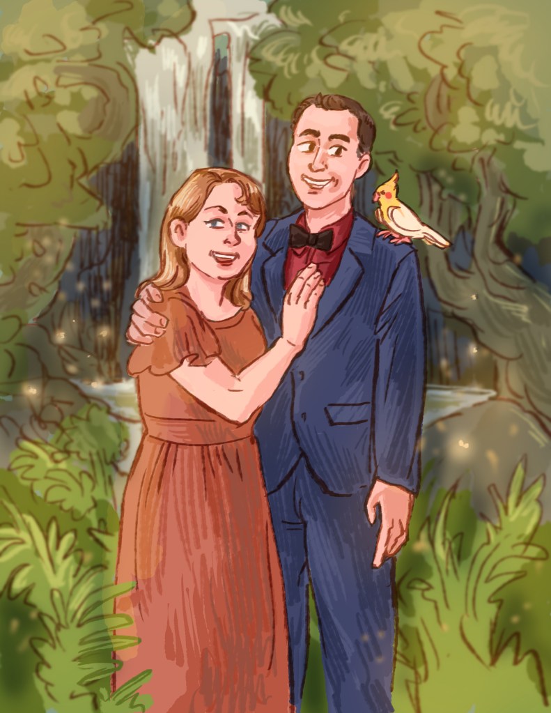 Portrait I did for a friend and former roommate (for a present for their friends). Gave it a more dreamy nature vibe!